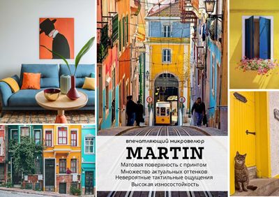 Микровелюр Martin – яркие впечатления для вашего интерьера Яркие впечатления, необычные города, дальние страны, что может быть интереснее для настоящего путешественника? Помните, как один гусь по имени Мартин совершил настоящее путешествие со стаей диких гусей и своим другом Нильсом? Именно такой характер у нашей коллекции микровелюров Martin, он преодолел километры дорог, побывал в тысячах городов, чтобы показать вам всю красоту нашего мира: яркие трамваи Лиссабона, осенние краски Новой Англии, изумрудные оттенки тайги и сине-голубые тона балтийского горизонта. Он впитал это в свою палитру и теперь каждый сможет с легкостью воплотить с ним в интерьере свои истории путешествий. Живые цвета, мягкая матовая поверхность и сдержанный ненаправленный дизайн по мотивам рельсового полотна – все это Martin. Он будет одинаково хорош в любой комнате дома, устойчив к загрязнениям и травмам. Обладает повышенной износостойкость и плотностью, прост в уходе и работе. По-настоящему идеальный попутчик в любом деле! Микровелюр Martin – яркие впечатления для вашего интерьера.